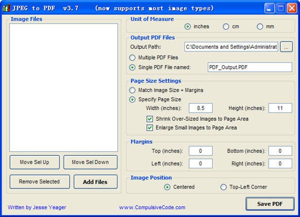 这是一个程序,用于将图像文件转换成PDF文件。该软件支持转换多个图像文件到单个或多个PDF文件。