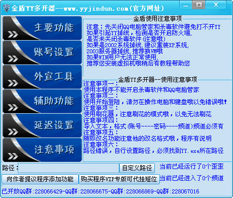 金盾YY多开器,YY聊天软件多开工具。金盾YY多开器支持手动多开,支持批量多开,支持一键换频道,和一键改名,以及批量刷花等等辅助功能。