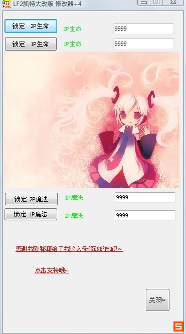 lf2凯特大改版修改器可以修改玩家1和玩家2的盛名、魔法数值。