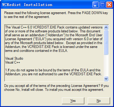 Vcredist.exe 是一个自解压可执行文件,它可以为在 Visual C++ 6.0 中创建的多数项目安装项目所需的最新版本的 Microsoft Visual C++ 运行时文件和操作系统组件。这些文件包括 Visual Studio 6.0 Service Pack 4 (SP4) 中包含的修补程序。