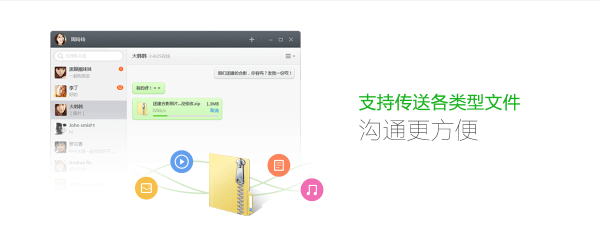 多人语音,多人实时沟通毕业后,同寝室的兄弟分在不同城市,再也没机会坐在一起侃大山。米聊多人语音,像面对面聊天一样。
