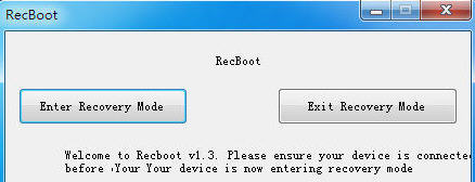 恢复模式进入和跳出工具RecBoot可以完全取代iRecovery,在恢复完成时跳出恢复模式,或者进入恢复模式以便恢复固件,支持Windows和Mac OS X平台。