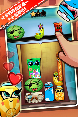 袋子大乱斗 Bag It!一款很有意思的休闲益智类游戏,在一个纸袋子中,你能够放入各种各样的物品在里面,比如盒装果汁、盒装牛奶、牛***、西瓜之类的零食。但是袋子的空间是有限,要想放入太多的东西,必须得让它们挤一挤。说它是和俄罗斯方块差不多,是它也加入了俄罗斯方块那种添加消除的元素,一物降一物,比如盒装牛奶能够压扁盒装果汁,然后西瓜是终极[杀手],能够压扁一切。你的任务就是不断的压扁一切能压扁的,节省袋子的空间,放入更多的东西。