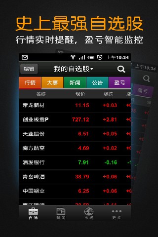 潜心梳理股市投资脉络,调研1000 用户炒股偏好,革命性推出创新炒股软件,旨在为投资者提供简约高效的手机炒股应用。强大的自选股监控,行情、大事、新闻、公告四大功能清晰展现,股市盈亏即时跟踪,全方位贴合投资者需求。
