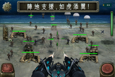 游戏通过重力系统实现瞄准,玩家通过上下左右倾斜iPhone即可将机枪火炮操控自如,玩起来临场感倍增!