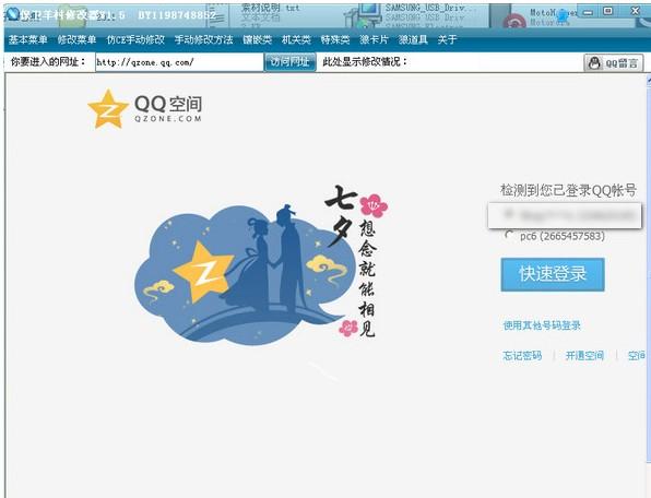 2.进入qq空间保卫羊村应用,会单独在浏览器中打开,再把浏览器保卫羊村应用网站复制到修改器中的地址栏中,再访问网址就可以进行修改了。