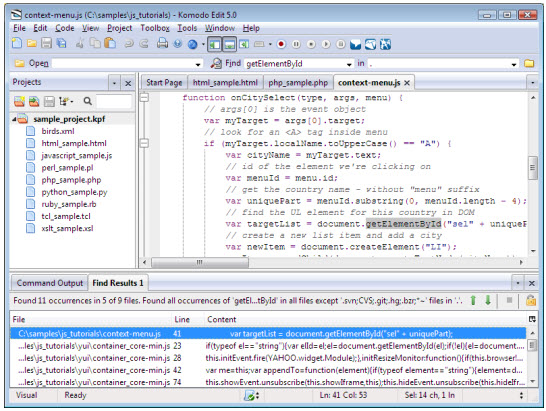 Komodo Edit是一个免费,开源,多平台,多语言编辑器支持:PHP、Python、Ruby、Perl、Tcl、JavaScript、CSS、HTML和喜欢模板语言RHTML,模板工具包,HTML-Smarty 和Django。