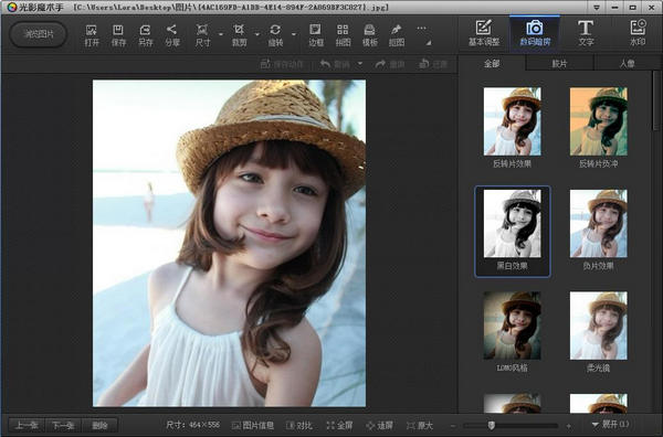 反转片效果光影魔术手最重要的功能之一。经处理后照片反差更鲜明,色彩更亮丽。算法经多次改良后,暗部细节得到最大程度的保留,高光部分无溢出,红色还原十分准确,色彩过渡自然艳丽,绝无色斑!提供多种模式供用户选择,其中人像模式对亚洲人的肤色进行了优化,不会出现肤色偏黄现象。独有的暗部增补算法不仅增强了暗部,同时令高光部分的表现更出色,绝对没有雾感引入。精心设计,专业效果!强烈推荐所有用户使用!数码补光当背光拍摄的照片出现黑脸的情况,或者照片出现欠曝的情况,利用数码补光功能,暗部的亮度可以有效提高,同时,亮部的画质不受影响,明暗之间的过渡十分自然,暗部的反差也不受影响。并且,特殊的补光算法在高反差的边缘也不会有光晕的现象产生!智能、高效!对于追补效果欠佳的照片,可以调节“强力追补”参数增强补光效果,该效果十分强劲!