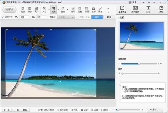 旋转这个选项里面你可以将照片就行旋转可以左右旋转上下左右镜像旋转或者按照一定的角度旋转这个其实挺有用的如果做电子相册或者视频什么的挺好的。