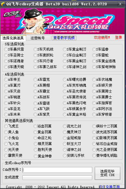 可用的qq飞车cdkey生成器,小编找了很久才找到的哦,分享给大家。有需要qq飞车cdkey的朋友下载吧。