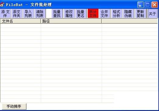 文件批处理(FileBat)是批量文件(夹)处理工具,可快速选定所需的各种文件,实现批量查找与替换、多功能批量更名、批量文件格式分析、多文件合并与拆分、批量文件属性修改、文件伪装/隐藏/寄生、多功能文件复制备份等功能。