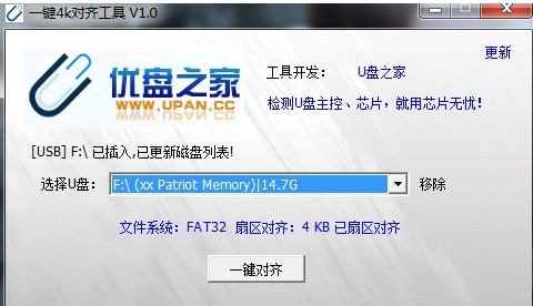 一键4K对齐工具 v1.3版本更新内容:增加格式化NTFS分区系统功能,对齐基础上,你可以选择你喜欢的文件系统(FAT32/NTFS);