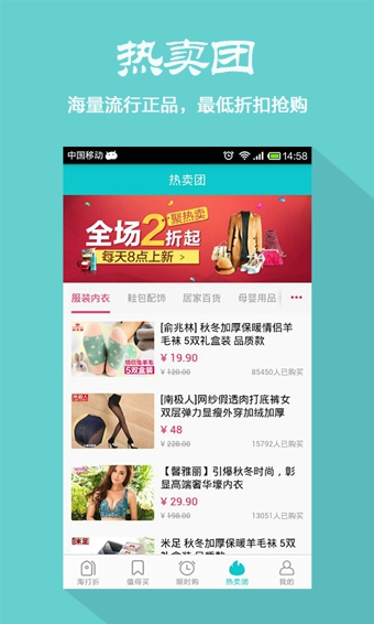 8、今日折扣,每日有百款商品以低价格等您来抢购。