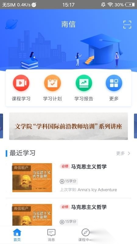 2. 打开应用后,点击“课程学习”,在此处能够学习到海量的精品课程。