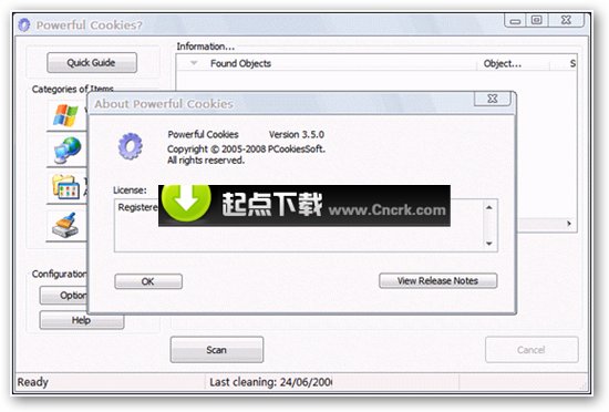 Powerful Cookies V3.5.7 汉化绿色特别版 Powerful Cookies是一款对Windows操作与Internet访问历史进行清除的工具软件。可以删除cookies、删除index.dat文件、消除最近访问文档历史记录、清除临时文件、释放硬盘空间、删除输入的URL地址、清空回收站内容等。