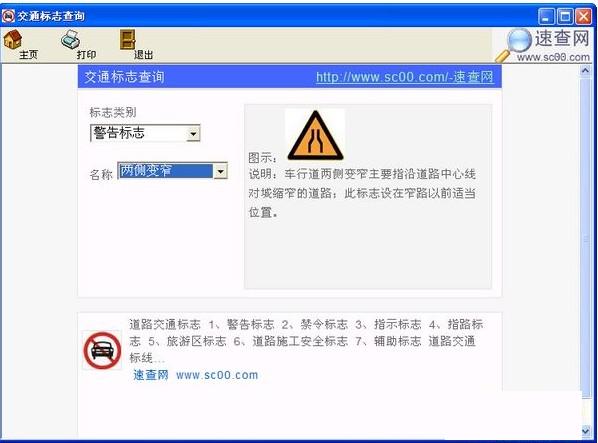 交通标志大全,可以查询交通标志,对驾考正在考理论的朋友有帮助啊。。道路交通标志:1、警告标志 2、禁令标志 3、指示标志 4、指路标志 5、旅游区标志 6、道路施工安全标志 7、辅助标志 道路交通标线。