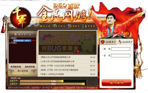 千军客户端是360首款全民网游,《千军》,聘请好莱坞调色师,打造出电影级唯美画面;采用顶级服务器,可同时容纳四万人,让玩家轻松交友。万人同屏的激情国战,真实还原了古代大型战役;上班族每天只需2小时,真正做到“好玩不累”;《千军》被玩家称为集战争、竞技、宠物、偷菜等百家之大成的游戏大百科全书。此外,《千军》不卖装备、取消商城、玩家可自由交易获得游戏道具,开创了网游第三代商业模式——公平游戏模式。