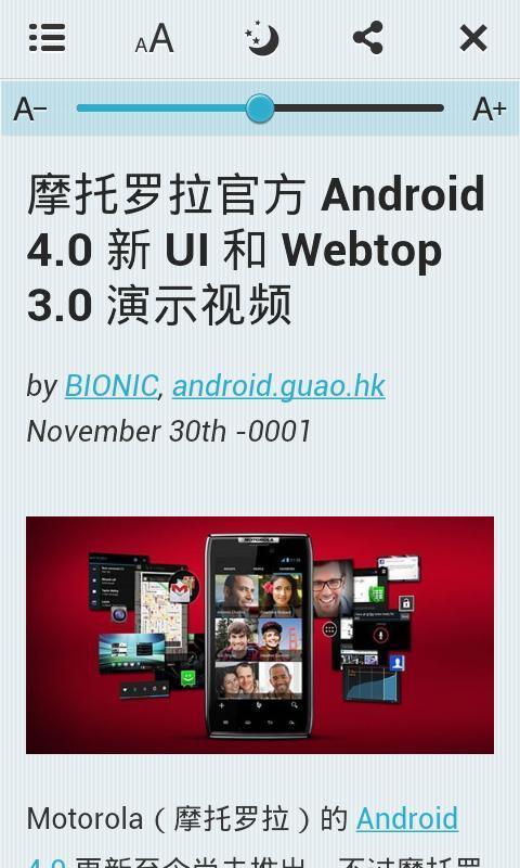 6. 字体大小切换,夜间模式给用户更舒适的阅读体验。