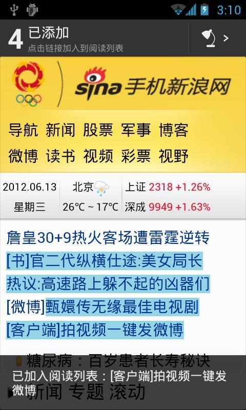 4.分页内容自动连接:对于某些网站(如凤凰网)的分页内容, 9点3刻浏览器的阅读模式可以自动把分页的内容全部下载到本地,拼接在一个页面当中,更方便阅读。