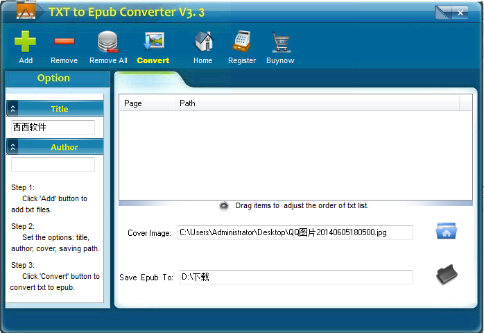 软件操作非常简单,只需要添加好TXT文本,然后设置下作者和标题,然后点击Convert按钮就可以使用了!