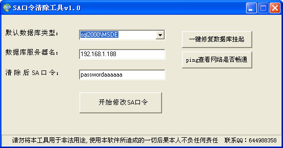 sa口令密码 没记住要怎么办?请用这款绿色易用的sa口令清除工具,绿色易用的sa口令清除工具,试过,真的好用噢。