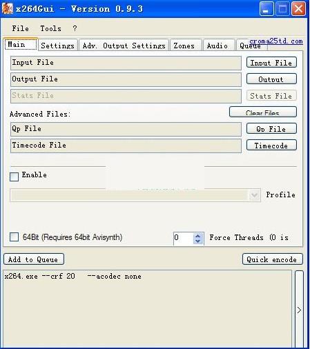 x264编码器(x264Gui) 0.9.3最新稳定版 x264Gui是一个小的,易于使用的工具,专门设计,为用户提供的x264编解码器的GUI。