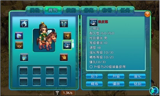 升级:升级材料从副本中获得,每件装备都升级都将有更加强力的属性。