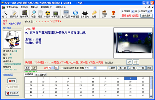 7.模拟考试: 按国家考试出题标准比例进行智能组卷,模拟出题,试题采取无序排列。(模拟考试有无数套,每套都是不一样的)