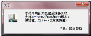 TaskBarHider 非常小巧,绿色无毒,可以直接使用,而且程序无可视窗口,仅有一个托盘图标。隐藏显示 快捷键为 Ctrl + ~(数字1左侧的按键)