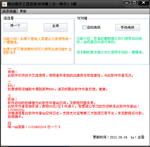 纯白助手之QQ连连看对对碰二合一辅助工具是qq连连看与qq对对碰二合一游戏免费外挂软件。能帮助你轻松战胜对手,请不要滥用工具,这样会让你失去游戏的乐趣。