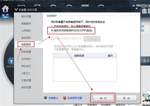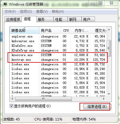 在任务管理器里结束毒霸的托盘进程和防御进程