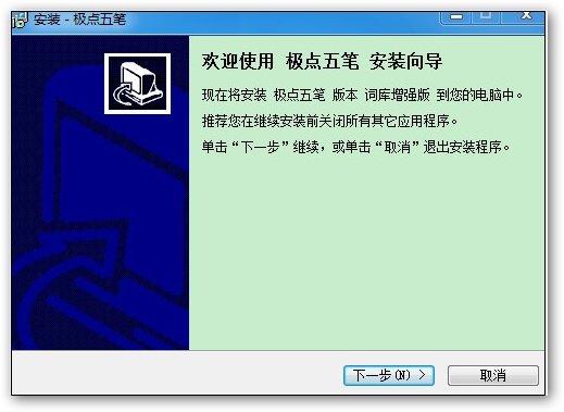 一、在本站下载最新版的极点五笔输入法安装包,双击运行。出现安装界面后点击我接受。