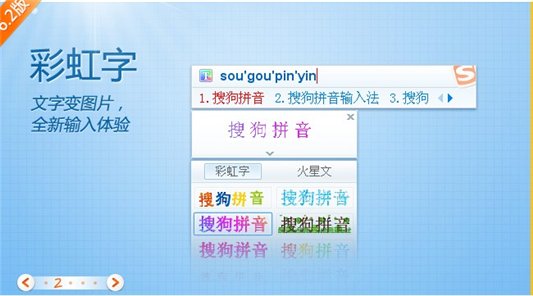 搜狗拼音输入法(简称搜狗输入法、搜狗拼音)是搜狐公司推出的一款汉字拼音输入法软件,是目前国内主流的拼音输入法之一。当不知道一个字的读音时,除了用笔画输入之外,还可以直接输入偏旁,从此生僻字输入再也不是难题!人名模式支持更多姓氏和名字的选择,让人名输入更简便顺畅。此外,输入法可以使用第三方账号登录了,只要你有QQ号、人人或淘宝账号,就可以直接登录输入法,实现词库同步功能,而不必另外注册账号。