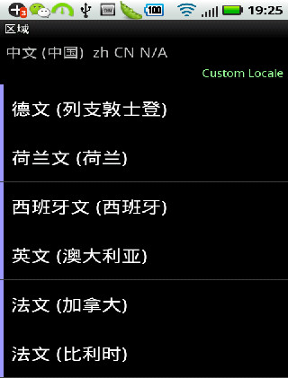 区域设置(Morelocale2)是一款手机区域设置软件,比如你的手机是英文版的rom,但是你想让你安装的软件显示中文,这就好办了,这好morelocale,然后设置你的区域为中文中国,然后你就会发现,好多软件界面上你熟悉的中文回来了。