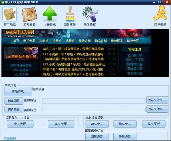 游久lol超级助手是一款专为英雄联盟游戏玩家打造的辅助工具,它可以帮助你自动上传战绩、安装皮肤以及对客户端进行修复。