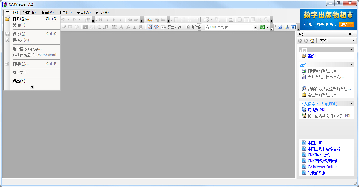 如何使用caj阅读器官方下载(CAJViewer)识别PDF文档方法如下:安装完CAJViewer7.2后,直接运行即可步骤1:使用鼠标操作依次选取“菜单栏”→“文件”→“打开”,选择要操作的PDF文件