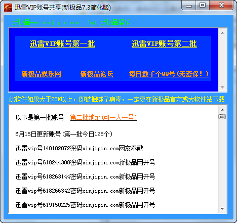 起点提示:这是一个迅雷vip账号共享软件,请不要更改迅雷vip账号密码。