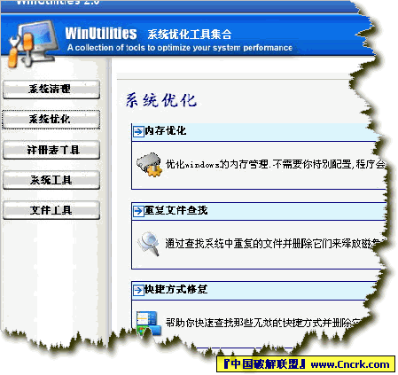 功能简介:系统优化工具集合,拥有以下功能: