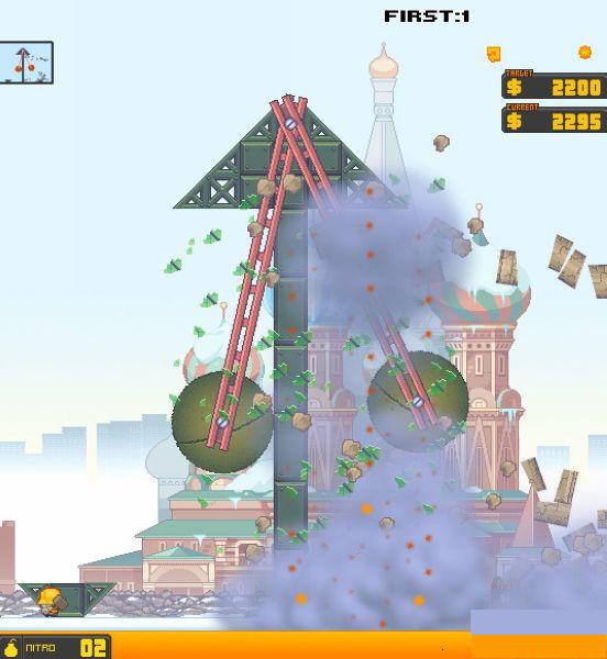 高楼爆破3无敌版,炸药无限。继上次爆破队拆迁东京后,这次他们将舞台搬到了莫斯科,去看下伟大的莫斯科红场,拆迁违规建筑吧。游戏内容是使用各种工具爆破和拆掉巨石建筑,画面精致精细,关卡设计巧妙!游戏里面你可以使用各种爆破工具,还有各种新的东西道具。喜欢高楼爆破系列的朋友可千万不能错过。