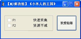 小米人的王国修改器是一款绿色纯净的游戏修改工具,可修改采集速度和资源消耗两项属性,使用方法也是很简单的,可以按修改器上面的快捷键即可修改。 使用方法 F1 快速采集 F2 资源不减