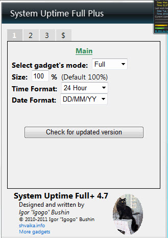 system uptime full plus是一个系统启动状态监视工具,它能够时刻显示当前操作系统的版本、安装日期和时间;上次启动的日期和时间,当前已经运行的时间,精确到日、时、分和秒。适用于win7和vista操作系统。