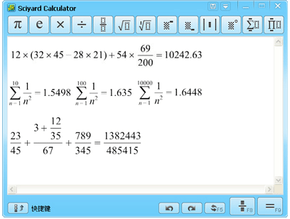 免费版的数苑通用计算器,功能上涵盖了数值计算、分数运算等功能,满足从小学到高中及日常生活的应用,且由于可视化的特点,比普通计算器更具实用性,是实体计算器、系统自带计算器及其它初级计算器所不能比拟的。