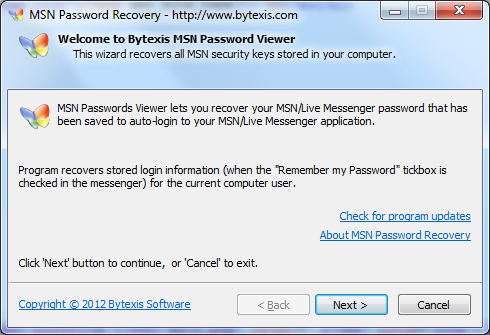 · Recover Windows Live Messenger passwords;