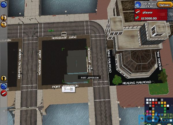 主控菜单位于屏幕的左上角,它集中了游戏的大部分控制操作。主控菜单针对不同的操作对象又可以分成两种形式:一种是针对街区的控制菜单,另一种是针对某种具体商业设施的控制菜单。游戏中共有25块可用于建设的街区,分别用蓝、黄、绿、紫、白等九种颜色加以标住,不同颜色的街区其土地价格一般也不相同,如游戏开始时,位于市中心蓝色的park place和boardwalk街区价格最为昂贵,是5星级的街区;绿色和黄色的街区次之;紫色和棕色的街区价格最便宜,只有1颗星。但这不是一成不变的,随着城市的发展,街区的价值也在发生着变化,最便宜的街区同样可以变成最昂贵的街区,反之亦然。
