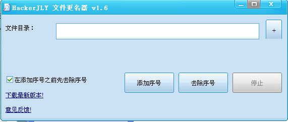 文件更名器用于对指定目录里的所有文件名字前面添加序号。去除指定目录里的所有文件名字前面的序号。