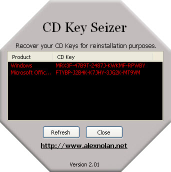 CD Key Seizer是一个系统cdkey恢复软件,用来找回自己安装的Windows和Microsoft Office的密匙的软件。