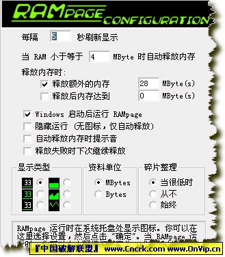 监视、显示、释放内存的工具,程序小巧,无须安装即可使用。常驻系统托盘,监视、显示内存使用情况,还可在任何时间以鼠标双击 RAMpage 图标即可释放内存。