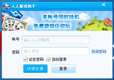 人人游戏助手是人人网针对广大玩家推出的一款游戏辅助软件。可以多帐号同时登录、设置游戏定时提醒,方便家庭用户或拥有小号的专业玩家挂机升级。农场类、经营类、宠物类、益智类等上万款游戏,任你选择、点击即玩!是大众网民的必备娱乐软件。