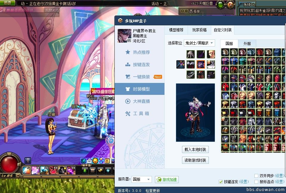 增加一键换装系统,多套装备不用愁!增加角色时装模型替换功能