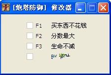 炮塔防御修改器买东西不花钱、分数最大、生命不减,是玩炮塔游戏玩家们最佳游戏工具。 使用说明 F1 买东西不花钱; F2 分数最大; F3 生命不减。
